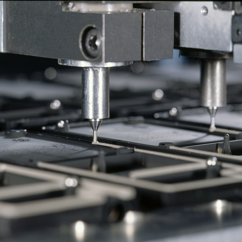 2. 特點:1、消除了傳統(tǒng)方法產(chǎn)生的膠點拉尾。2、沒有點膠針的磨損和和其它零件 干涉的問題。3、無針嘴損壞。4、無由于基板彎曲和被針嘴損害的報廢。